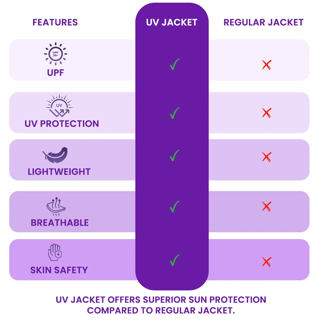 Let’s be real. Sunscreen wears off, needs constant reapplying, and let’s face it—not everyone remembers. A UV jacket for women gives you peace of mind from morning to night, without that oily feel or white cast.